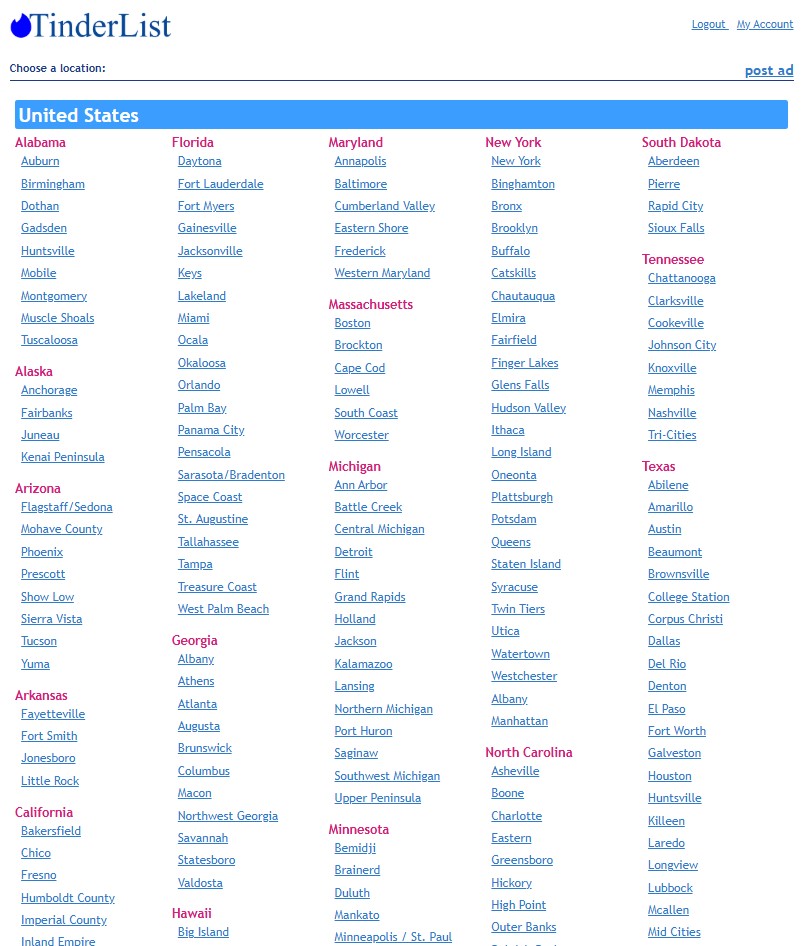 The most popular ad posting website in the USA and Canada, www.tinderlist.com